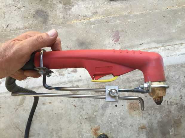 Quite los soportes de chapa de los pernos en U y soldar en los extremos de la varilla de montaje. Tenga cuidado de alinearlos bien para que cuando se instala, la varilla es paralela a la palanca de la cabeza de antorcha. Los pernos en U será probablemente demasiado largo para la aplicación, así que siéntete libres cortar hacia abajo. Puedes poner las tuercas de mariposa en ellos también para facilitar la extracción.