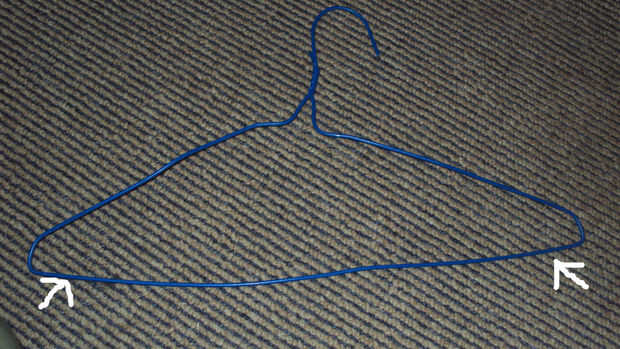 De la curva de la percha, mida 2 cm y marcar con el rotulador. Hacerlo en ambos lados.