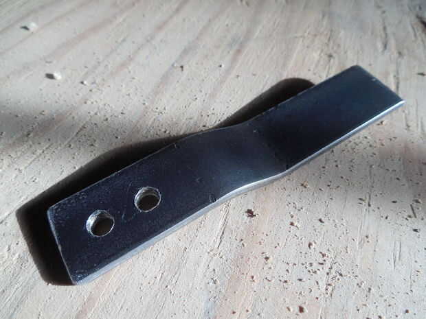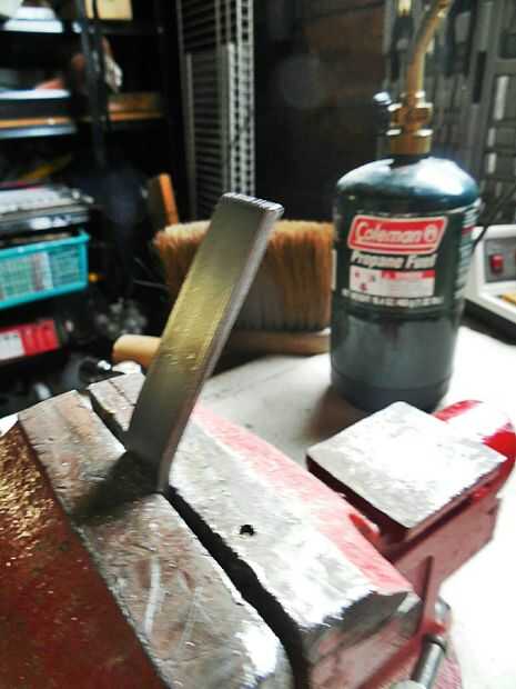 Doblando el acero toma el calor y la presión. Después de medir donde desea que su "curva S" para iniciar y detener para dar espacio para el disco, usted querrá amarrar su acero en un vicio al calor con un soplete. No te puedo decir empíricamente cuando despedir el calor y presión. Usando el peso de mi cuerpo, agarró un archivo grueso por los extremos y empujado perpendicular contra la parte superior del acero. Repetir más abajo en la dirección opuesta para obtener una "curva S".