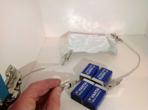 Paso 9: Conectar los otros clips de cocodrilo con el papel aluminio y al otro lado de la batterie