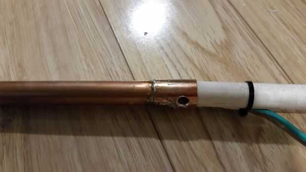 1. Las armas de cobre se cortan a la longitud. Cobre se utiliza como llevará a cabo la electricidad para el alambre de nicrom, pero también para actuar como un disipador de calor para un uso prolongado de la herramienta de corte.