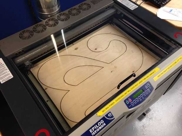 Mi 1/2' madera contrachapada era demasiado gruesa para este láser, la imagen fue quemada en y utiliza como guía de corte.