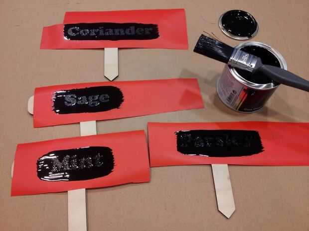 Como la intención de estas señales es para pegar en el suelo fuera, también les di una capa de barniz de yate para hacerlas más resistente a la intemperie.