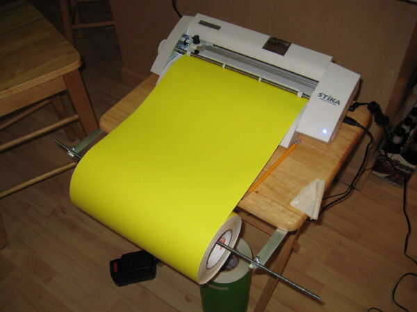 Qué había estado haciendo sólo apoya el vinilo con un palo de escoba y colgar debajo de una barra de heces. El problema era la cuchilla del plotter no es lo suficientemente fuerte como para tirar el vinilo del rodillo, rodillos de la cuchilla del plotter se deslizan sobre el vinilo. Yo siempre tiraría hacia fuera algunos holgura, o al menos tratan de recordar. Si yo no saque flojo, el punto inicial y punto final de un corte no satisfaría, así una pérdida de material y tiempo.