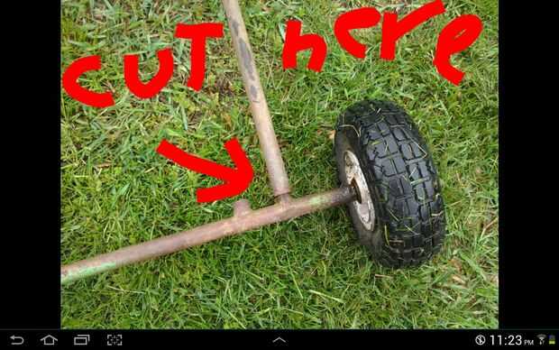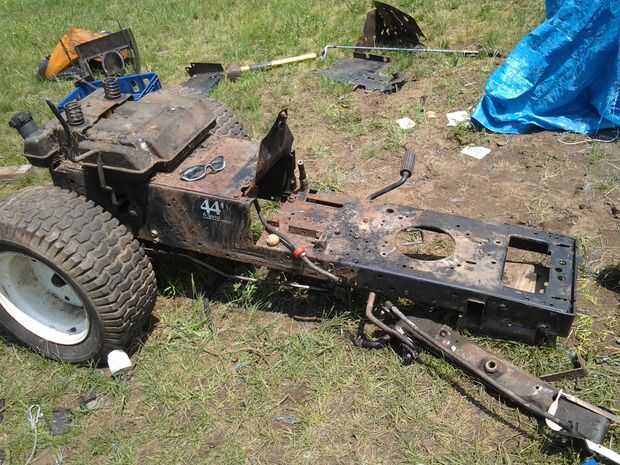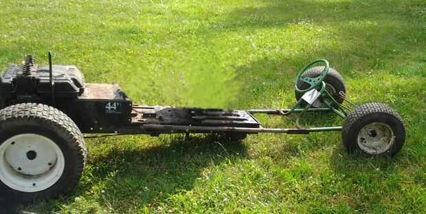 La parte más difícil de la construcción era rasgar el cortacésped hasta el marco. Esto me tomó alrededor de nueve horas. Para hacer esto, simplemente seguir tomando de los pernos hasta que te quedan con un marco. Como se puede ver en la segunda foto, incluso quitar el eje delantero. En cuanto a la estructura de go kart, sólo corte el eje trasero. Me quité el asiento y lo reemplazó con el asiento de Segadoras. Más acogedor! Ahora a soldar el marco va kart para el marco de la podadora para completar todo el armazón como se muestra en la cuarta foto.