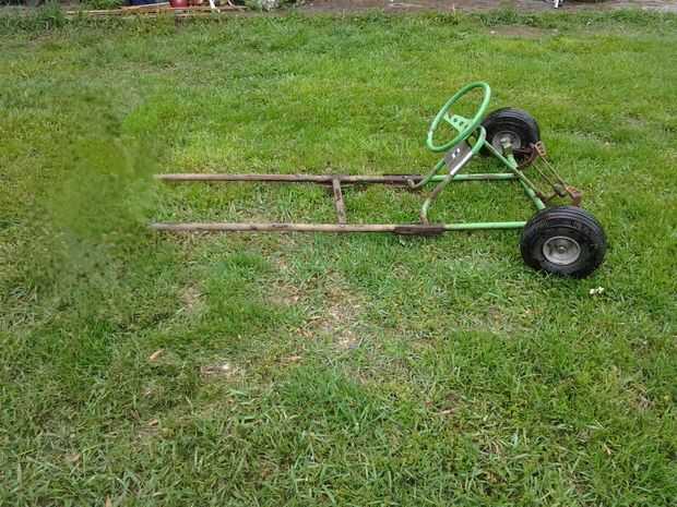 se trata de un go kart que hice y ojala usted podrá así. Usé el extremo posterior de una bicicleta y el eje delantero de un paseo en cortadora de césped. Además de algunas otras piezas de chatarra tenía por ahí.Antes de comenzar hay algo importante q