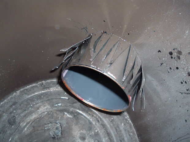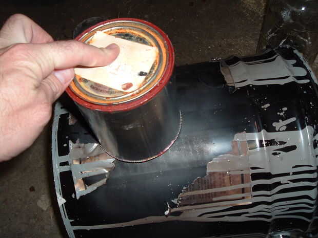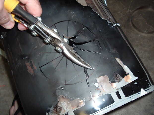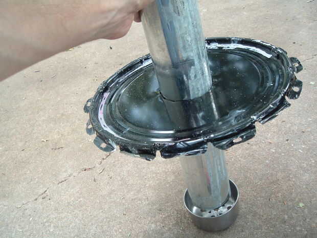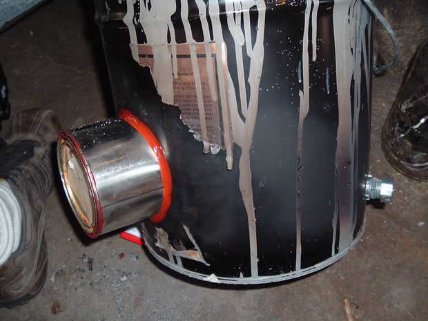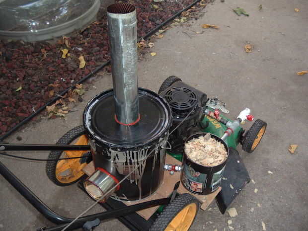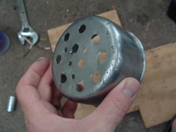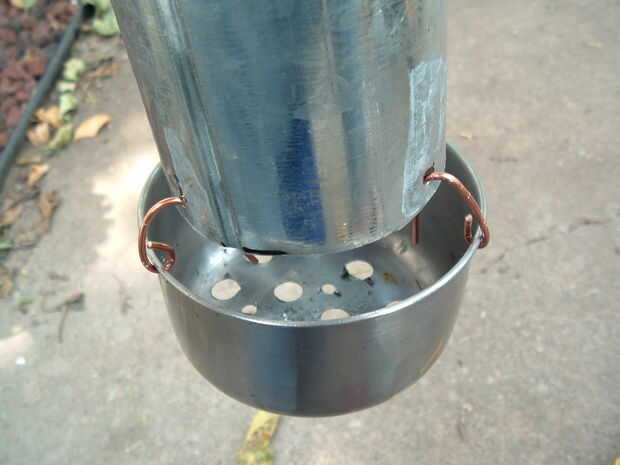 Un tazón de acero inoxidable fue utilizado para el brasero en la parte inferior de la tolva de combustible con un alambre de cobre pesado.