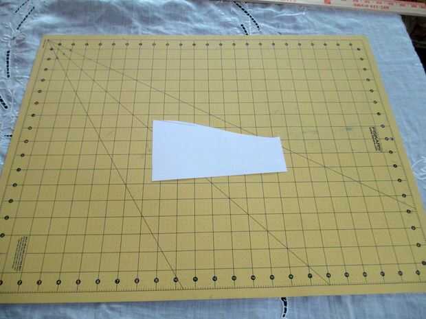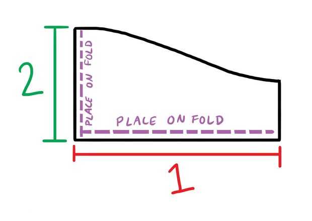 Para dibujar el patrón mismo, marque las medidas 1 y 2 en la esquina de su papel. El final de medición 1, trazar una línea recta sobre 2-3" altura. Entonces dibujar una curva inclinada de la tapa de medición 2 a la línea previamente dibujada.