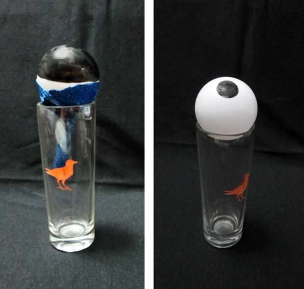Mientras está secando, descansar en algo que le lado derecho hacia arriba. Pongo minas en un vaso de chupito.