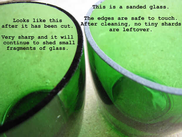 quería reciclar algunas botellas de vino viejo en vasos y candelabros.  He visto muchos en línea consejos sobre cómo comprar una plantilla para hacer el corte, el vidrio con un dremel, etc. de la arena.  Pero, ¿por qué comprar una plantilla de $20-30