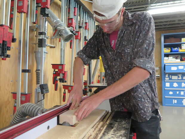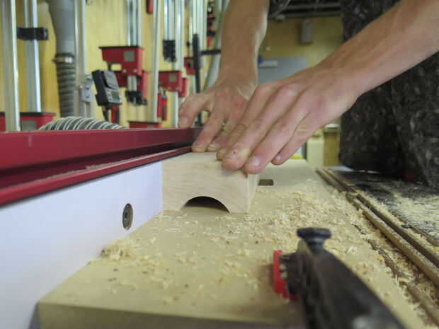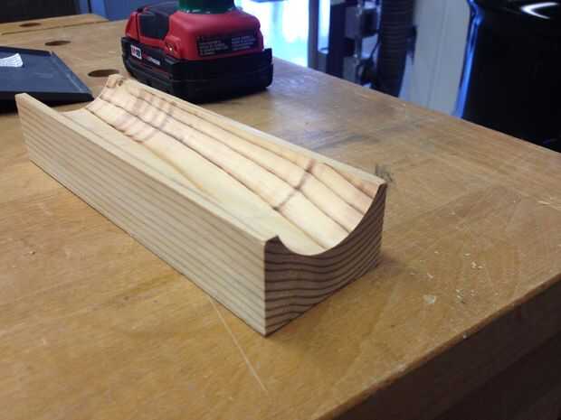 Un canal que se adapta a su espiga es la parte más importante de esta plantilla. En mi caso estaba interesado tacos de aproximadamente 2 pulgadas por lo que se necesita para que con un canal de 2 pulgadas, lo que significó que necesitaba un gigante la broca de fresadora. Brocas grandes son divertidos pero super cuidado porque ellos también son peligrosos. Asegúrese de que tomar pequeños pasos en la mesa de fresadora levantando el pedacito solamente una pequeña fracción de una pulgada cada vez. Tratando de sacar el radio todo a la vez no funciona, te lo garantizo.