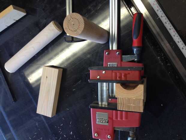 Una vez que tenga los canales enrutados hacia fuera en las dos piezas largo es el momento para pegar en los dos bloques más cortos. Estos se deben pegar al lado de una de las piezas largo dejando un espacio en el centro como se muestra en la foto de arriba. El espacio es donde irá la pinza así que seguro va a ser lo suficientemente profundo para aclarar la abrazadera antes de pegar las piezas. Si no es sea necesario realizar bloques más grandes.