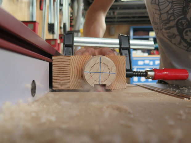Esto es una plantilla muy sencilla pero tiene un enorme potencial de ahorro de los dedos y la pieza de trabajo. Utilice un simple bar clamp o pinza de 'C' para asegurar el material de la plantilla y apriete firmemente. Una vez que esté seguro puede utilizar esta plantilla para cortar la espiga con una mesa de fresadora o cortar con una sierra de mesa o sierra de banda. La usé sólo para aplicaciones de mesa de router, que aparecerán pronto en una Instructable. Como con la elaboración de esta plantilla, asegúrese de que sus cortes son pequeños e incrementales en lugar de intentar crear todo a la vez.