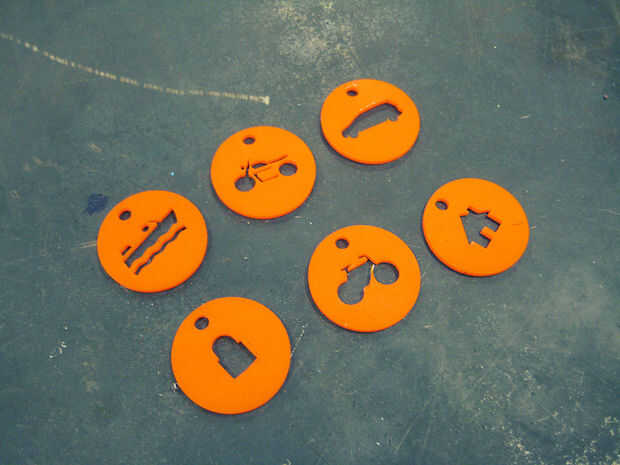 si tienes un grabador láser y quiere hacer algunas etiquetas de equipaje slick (o cualquier otro tipo de etiqueta específica ubicación) puede utilizar un mapa de su ciudad natal, adhesivo en aerosol, acrílico de chatarra y un cortador láser a salir a