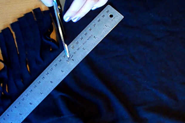 Luego decidir la forma de «V» que desea. La más amplia o más profunda la V, la más sexy y más reveladora de la camisa. Colocar una regla al contorno donde va cortando.