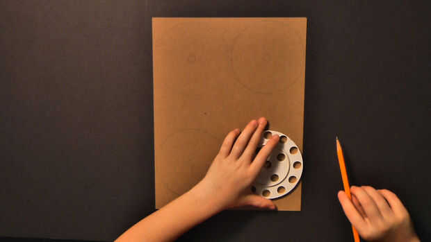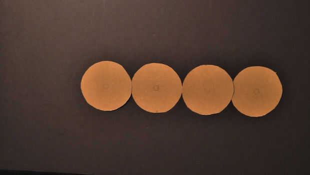 Usar una plantilla de 4" de diámetro o un compás a un radio de 2" para trazar cuatro círculos en el conglomerado. Asegúrese de marcar también el centro de cada uno. Cortar cada círculo