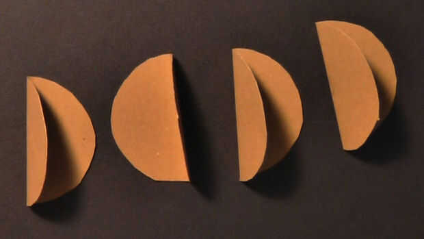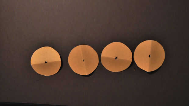 Doble cada círculo por la mitad con la marca en el exterior. Corte un pequeño agujero en cada círculo (ideal menor que el diámetro del palillo) en la marca y despliegan. No el fin del mundo si son más grandes que el palillo.