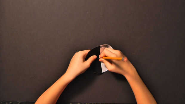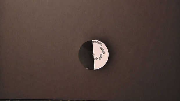 Corte la plantilla de Top Chop (ver el PDF con la lista de materiales). Esto es solo el disco de Benham - si buscas en google, usted puede encontrar muchos más ejemplos. Incluso podría intentar dibujar tu propio (y si lo hace, por favor comparta su experiencia y fotos!). Utilice el lápiz o palillo cuidadosamente perforar un agujero en el centro de la plantilla