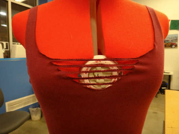 Estirar la tela para hacer las tiras más fibrosos y enrollar los bordes.