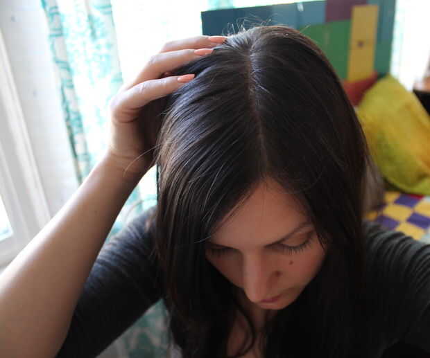 Parte de su cabello como lo haría normalmente. (He incluido una foto para mostrar lo que parece la parte superior de mi cabeza durante este poco!) Es importante parte de su cabello como normalmente, si se cepilla todos de nuevo, que no caiga como lo hace normalmente. Después de cortar y quitar la scrunchie, será lo más alejado de la recta cuando se se separaron otra vez. Si normalmente no parte su cabello, puede jugar un poco con el uso de una parte media, creo que puede ser la más segura.
