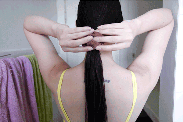 Si tu cabello es especialmente largo, puede tirar de la parte inferior como se muestra en la segunda foto. Este método es un poco más complicado y no hacerlo a menudo, pero es factible.