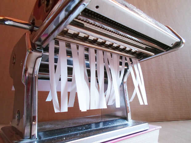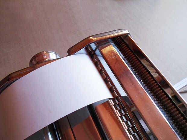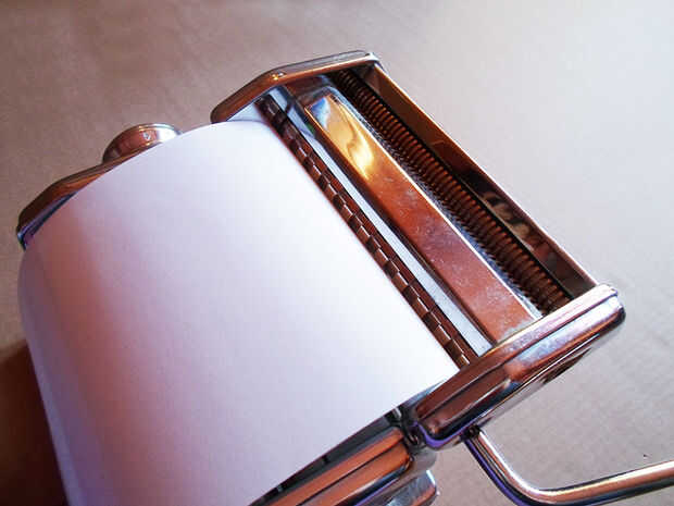 Como rodarla, usted comenzará a ver su papel de tiras que salen de la parte inferior de la máquina de pasta!