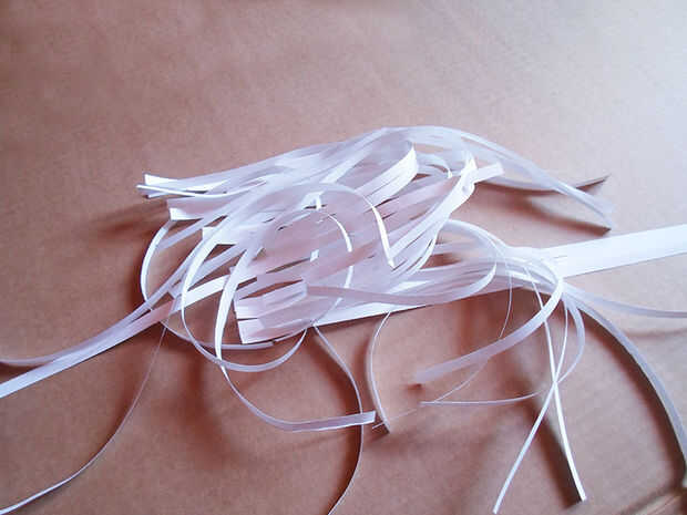 Sus tiras de papel será de 0, 7cm (0,27 '') de espesor. Este tamaño puede variar dependiendo de la cortadora de la máquina de pasta que tienes.