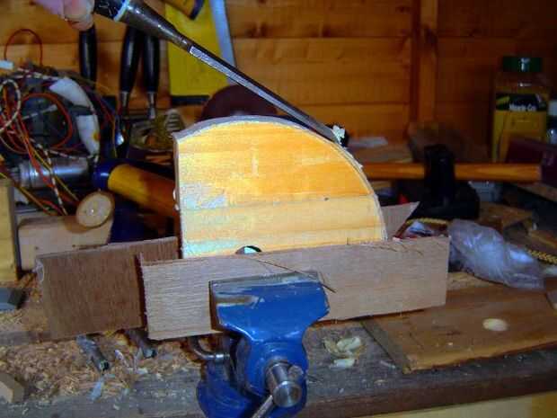 Perfore el centro de un agujero correspondiente en la base de un husillo en la pieza de trabajo. Encajar el eje a través de la pieza de trabajo y en la base. Asegúrese de que la pieza quede al ras con la base y puede activar cómodamente. No debe haber ningún juego lateral - lo contrario que terminará con un óvalo, no un disco.