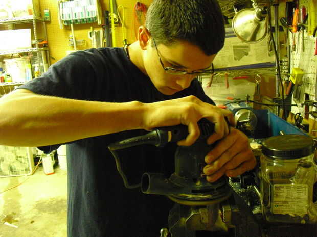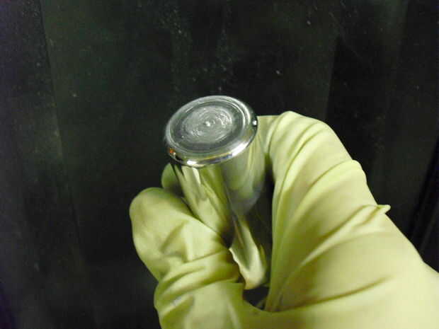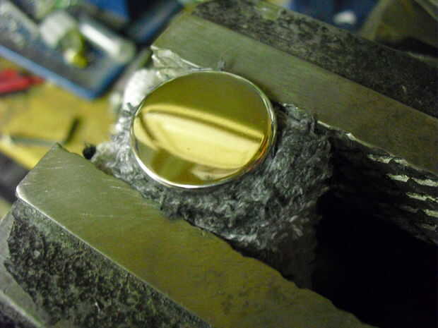 Mi sello se quedó con un nudo en él, usé una lijadora de palma para aplanar la superficie. Un archivo de metal plana también funcionaría. Luego había pulido como lo hice con la otra sección.