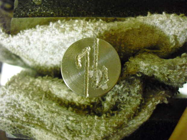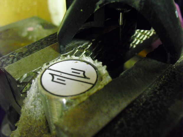 Tirada un poco acentuado en el Dremel y establecer la profundidad a aproximadamente 1/32 pulg. Cuidadosamente haga un pase a lo largo de su diseño. Go lento. Una vez que termine un paso, bajar la broca de 1/32" otro y volver. Tardará un rato pero el producto final será más agradable. Continuar hasta que tenga una profundidad de aproximadamente 1/8". Un archivo fino y puntiagudo puede utilizarse para suavizar los bordes.