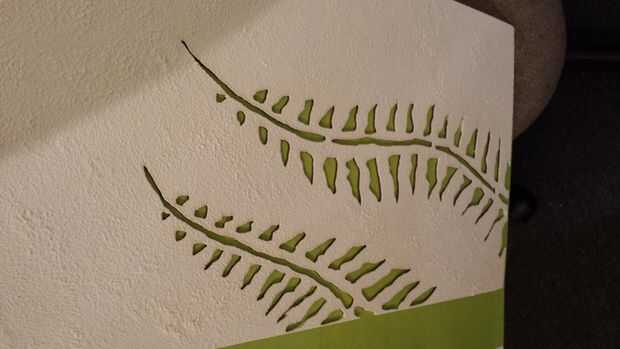 ¡ Oh bien. De todos modos, después corte a la cartulina sobrante, los helechos están ahora listos para colgar. La última imagen de la noche muestra producto terminado contra el muro de su destino. Todos nos hemos dejado hacer ahora es añadir nuestro elegido colgar piezas - velcro plástico tiras (como el industrial, todo tipo de clima M 3 plástico de Velcro utilizado para colgar cuadros pesados y decoraciones al aire libre) - y pop los tableros en la pared. Van a estar escalonadas como en las imágenes de la intro para obtener el efecto idealizado, pero vamos a tener que jugar con el espacio. Necesitamos un día agradable y soleado antes nos podemos colgar estos - garaje (den) tiene grandes lucernarios que pueden inundar la pared con tan brillante luz del día - por lo que finalizado imágenes próximas.