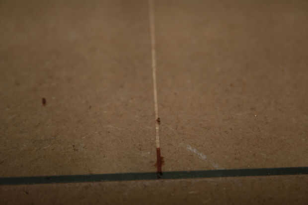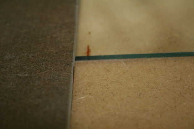 Cortar vidrio para encajar en un marco que he hecho. Desea medir y marcar ese vidrio; He utilizado un rotulador para marcar el vidrio. Tenía un pedazo de Masonite que usé como el borde recto. Cuando alinee el borde recto ten cuidado con el off set de fueron la rueda de corte es también el lado de la herramienta de corte. Sostener el cortador de cristal como un lápiz, sosteniendo el borde recto en su lugar, marcar el cristal con una presión firme. Sólo haga un pase con el cortador de vidrio, nunca hacer el paso dos con el cortador de vidrio. Cuando anota el vidrio están haciendo un punto débil en el vidrio.
