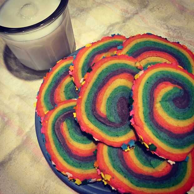 El año escolar está llegando a su fin... sólo 4 días esta semana antes de los exámenes! Hornear galletas más los fines de semana para que los niños tendrán un regalo en sus loncheras y que no había hecho en un rato. Hoy ha sido clase de lluvia, así que decidí hacerlos en arco iris alegres en la esperanza que el sol demostraría para arriba finalmente. Esta receta hace mucho y que puede hacer cualquier tipo de diseño que te gusta. En Navidad la mitad de la masa de color rojo y dejar el resto llano luego remolino que parecen caramelos de menta. A veces incluso voy a poner un poco de extracto de menta en la masa. Puede utilizar cualquier color que te gusta.