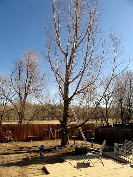 Si bien hay muchas buenas referencias para el retiro del árbol, la mayoría se basan en el uso de una sierra de cadena y asume que se puede cortar todo el árbol hacia abajo. En este caso el árbol tuvo que ser quitado de pieza por pieza, debido a la falta de espacio en el patio. Así que nos acercamos a este como cualquier otro proyecto de ingeniería.