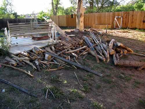 Primero se reunieron los trozos grandes y luego les ofreció para arriba como leña en Internet.  Cuatro respuestas en menos de 5 minutos y se deshizo de la mayor parte gracias a la primera persona que respondió a la oferta.