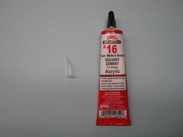 • Cemento acrílico (fotografiado arriba) - usa #16 cemento de Weldon.