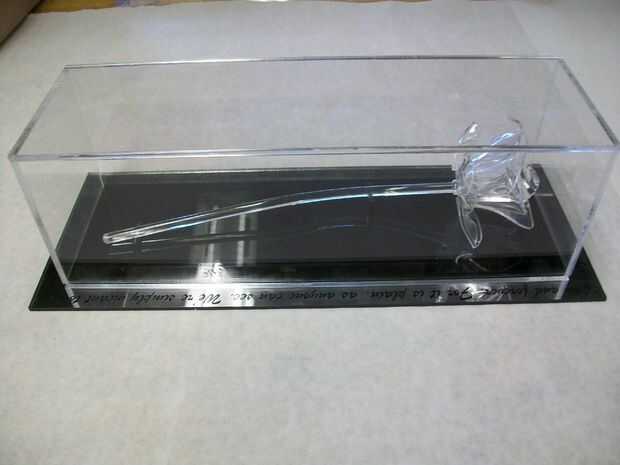 Aquí está la rosa terminada completa con caja de presentación. (No es muy fácil tomar fotos de acrílico claro y espejado)