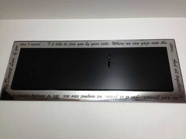 En el orden de las palabras a grabadas correctamente, debían invertirse porque estaba haciendo un reverso grabado en la parte posterior del acrílico espejo. Después fue cortado hacia fuera, aerosol pintado de la parte posterior del acrílico negro para que el texto sería mostrar a través de él. Luego, utilizando una pieza de acrílico negro, corté un pedazo de base más pequeño que estuviera pegado a la parte superior de la pieza de espejeada de acrílico. Luego pegué los titulares dos madre sobre ella para mantener el rosa en su lugar.