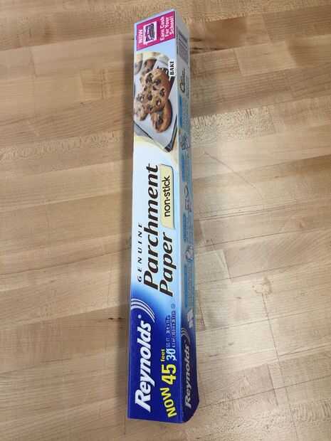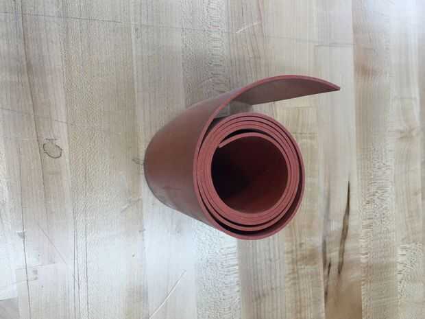 2. Coloque un pedazo de caucho de silicona de 1/16" hacia abajo, cortar un trozo de papel de pergamino y enchufe la plancha.