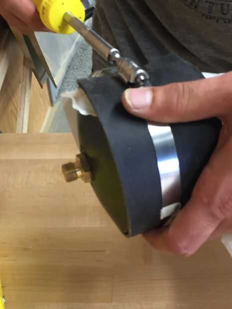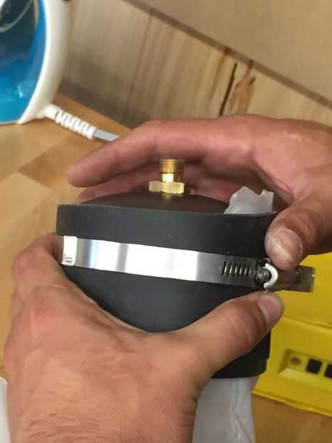 4. Utilice un pedazo de tapa ABS o PVC y perfore un agujero y el tornillo en la boquilla de acoplamiento.