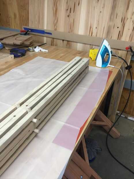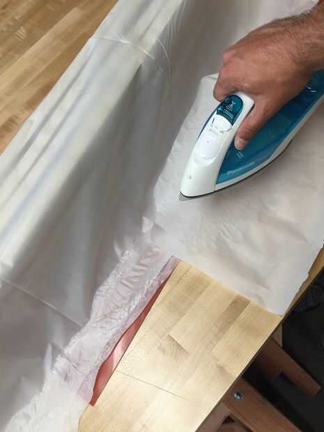 3. hierro un parecer a lo largo de la lona plástica que encierra la madera seca.