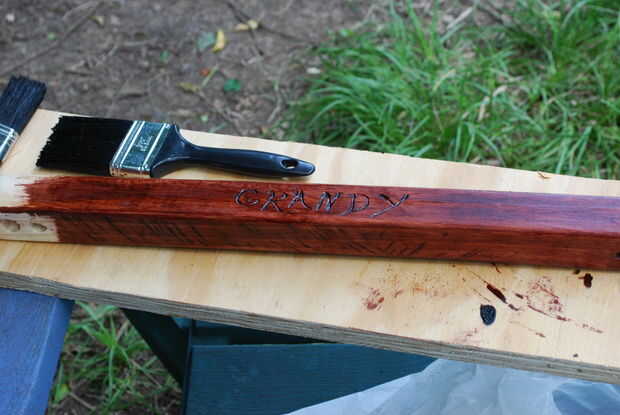 Ahora es momento de lijar la madera tanto o tan poco como desee. Dejó algunas marcas en la madera y realmente lo hizo ver más interesante para mí. Después de listo con lijar Asegúrese de que usted limpie su madera fuera muy bien. No sé mucho acerca de la coloración de la madera pero lo que hice fue usar un cepillo y cepillado hasta tres capas (dejando que cada capa seca en el medio). He visto algunas personas frotar la mancha en con un paño.
