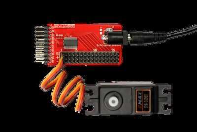 3. Conecte sus dos servos de rotación continua a las posiciones 1 y 2 en el módulo de servo. Recuerde, el cable negro va a tierra /-.