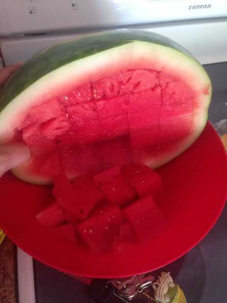 Encontrar un tazón grande y volcado en y disfrutar. Puede tomar un par de veces al tamaño del prefecto de cubos. Pero usted puede siempre rebanada en cubos en la mitad de la salido de la gran... Pero apenas se deslice hacia afuera y eso es lo que me gusta de este método no Tim no consumiendo, lío grande y fácil.