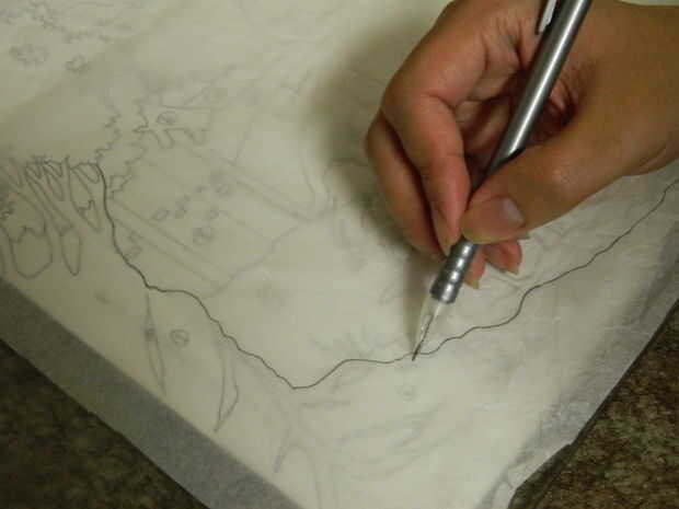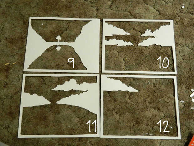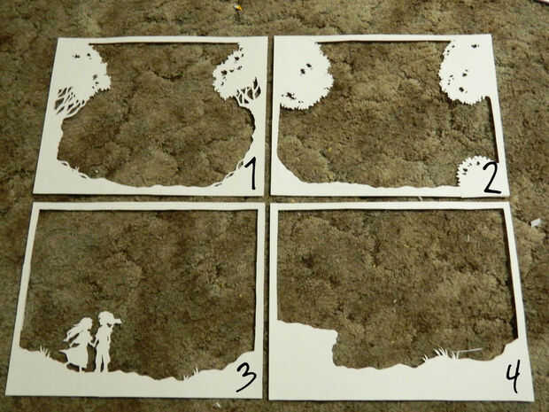 1. imprimir (o trazar cada capa con su papel de calco) en su papel de stock tejido de tarjeta. Número de cada capa a su contorno frontera algunos discretos.