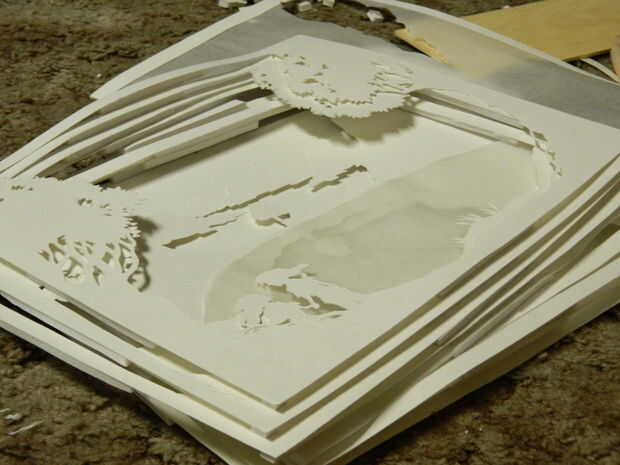 2. Coloque cada una de las capas en la caja, fijar cualquier sueltos y cubierta con una sábana ajustada de cartulina.