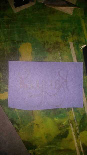 Así que una vez tenía un diseño que me gustó mucho, puso boca abajo en mi papel de color, ya que mi diseño se refleja no tiene que preocuparse acerca de qué manera transfiere sobre el papel cortado. Donde pongo el grafito será la parte posterior de la pieza cortada, para que el grafito no se mostrará en todo en la parte delantera. Luego me froté la parte posterior del papel blanco para obtener el grafito para transferir en el papel azul.