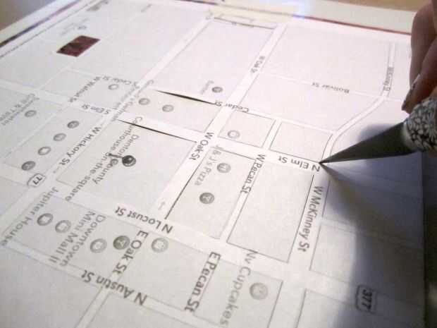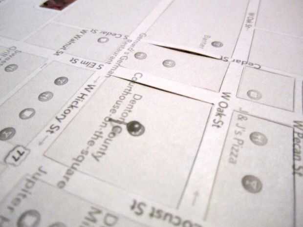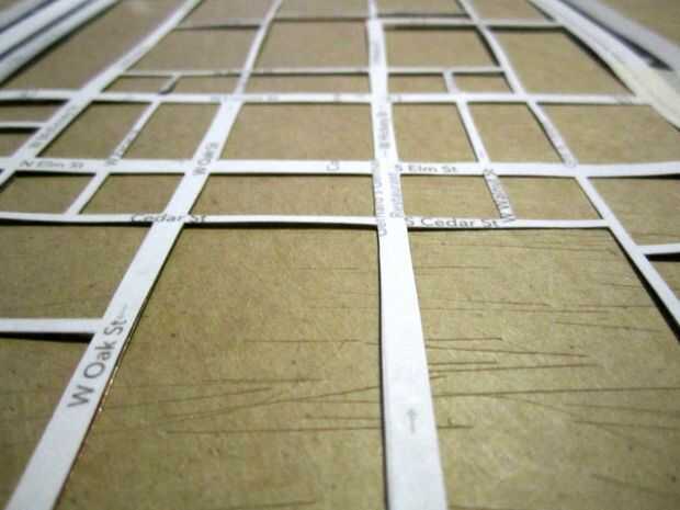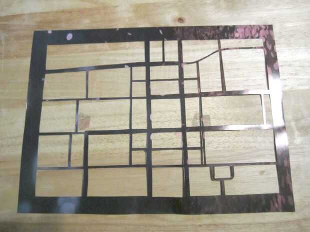 Tip: Al cortar las líneas horizontales que completan el corte de una sección, a partir de la media y su forma de trabajo hacia fuera. Esto ayudará a que la cinta de sujetar el mapa en su lugar por más tiempo.