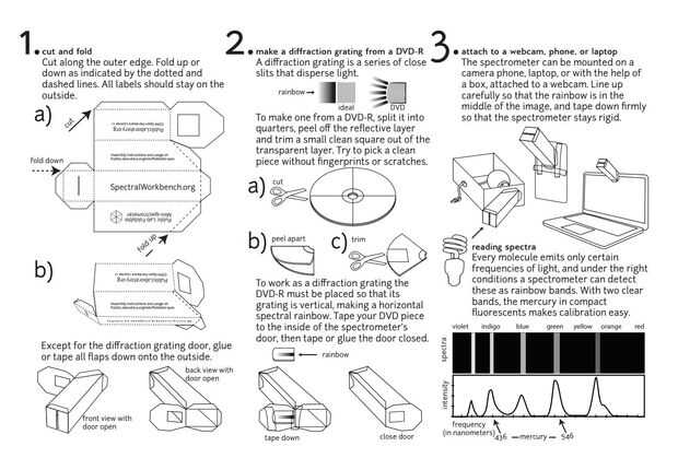 Redactar experiencias con una transmisión de código abierto espectrómetro de DVD, papel y cámara de la reja. Un gadget muy eficaz para obtener la formación práctica en espectroscopia.Aplicación práctica: puede ser utilizado por ejemplo para comprobar