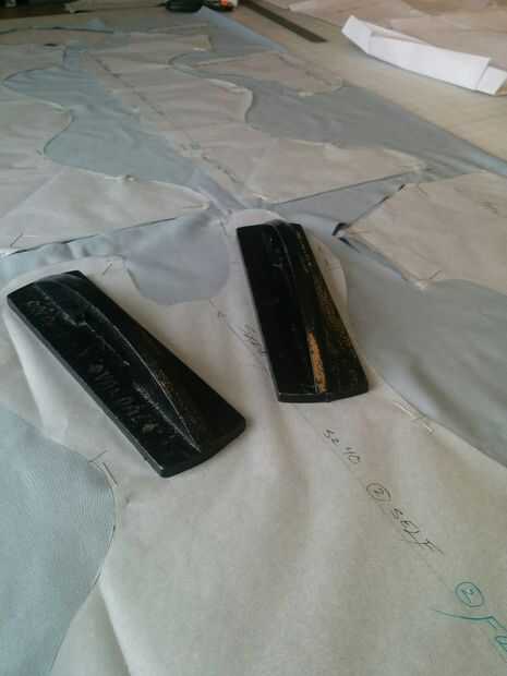 He descubierto un par fresco de herramientas, peso de la tela. Para usarlos, colocarlos en el centro del patrón un empuje hacia fuera a los lados a nivel de la tela y mantienen las formas.